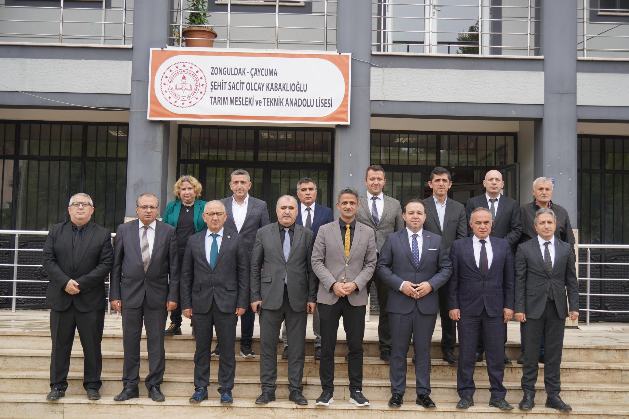 Çaycuma Kaymakamı Adem Kaya, İl Tarım ve Orman Müdürü Nihat Ağan ve İl Millî Eğitim Müdürü Uygar Keskin ile birlikte Şehit Sacit Olcay Kabaklıoğlu Tarım Mesleki ve Teknik Anadolu Lisesi’ni ziyaret etti.